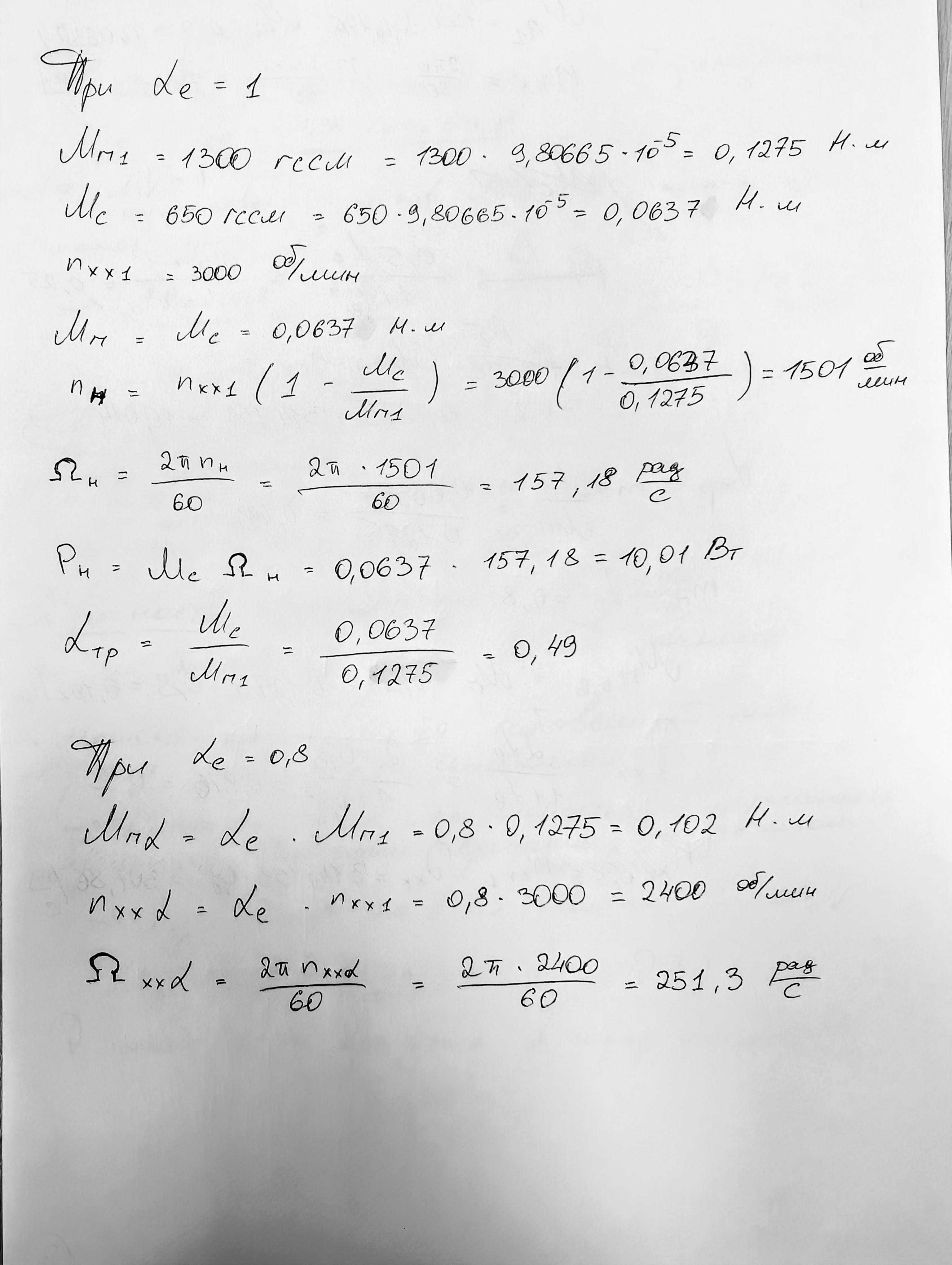 Дано. Идеальный асинхронный исполнительный двигатель при амплитудном управлении и при коэффициенте сигнала ae = 1 имеет: пусковой момент Mп1 = 1300 гс·см, частоту вращения холостого хода nхх1 = 3000 об/мин. Момент сопротивления нагрузки постоянен Mс = 650 гс·см. Определить: номинальную мощность исполнительного двигателя, сигнал трогания , а также рассчитать пусковой момент, угловую скорость и частоту вращения холостого хода АИД при коэффициенте сигнала αe = 0,8 при амплитудном управлении. Использовать размерности величин в системе СИ. При решения задачи используйте следующие обозначения. Mп1 – пусковой момент при αe = 1 nхх1 – частота вращения при αe = 1 αe – коэффициент сигнала Mс – момент сопротивления нагрузки Mб – базовый момент Ωб – базовая скорость Pб – базовая мощность Pн – номинальная мощность αтр – сигнал трогания Mпα – пусковой момент при заданном αe Ωххα – угловая скорость при заданном αe nххα – частота вращения при заданном αe |