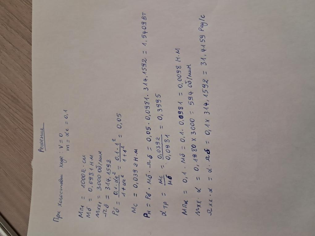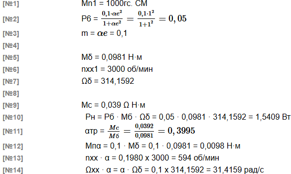 Дано. Идеальный асинхронный исполнительный двигатель при амплитудном управлении и при коэффициенте сигнала ae = 1 имеет: пусковой момент Mп1 = 1000 гс·см, частоту вращения холостого хода nхх1 = 3000 об/мин. Момент сопротивления нагрузки постоянен Mс = 400 гс·см. Определить: номинальную мощность исполнительного двигателя, сигнал трогания , а также рассчитать пусковой момент, угловую скорость и частоту вращения холостого хода АИД при коэффициенте сигнала αe = 0,1 при амплитудном управлении. Использовать размерности величин в системе СИ. При решения задачи используйте следующие обозначения. Mп1 – пусковой момент при αe = 1 nхх1 – частота вращения при αe = 1 αe – коэффициент сигнала Mс – момент сопротивления нагрузки Mб – базовый момент Ωб – базовая скорость Pб – базовая мощность Pн – номинальная мощность αтр – сигнал трогания Mпα – пусковой момент при заданном αe Ωххα – угловая скорость при заданном αe nххα – частота вращения при заданном αe |
