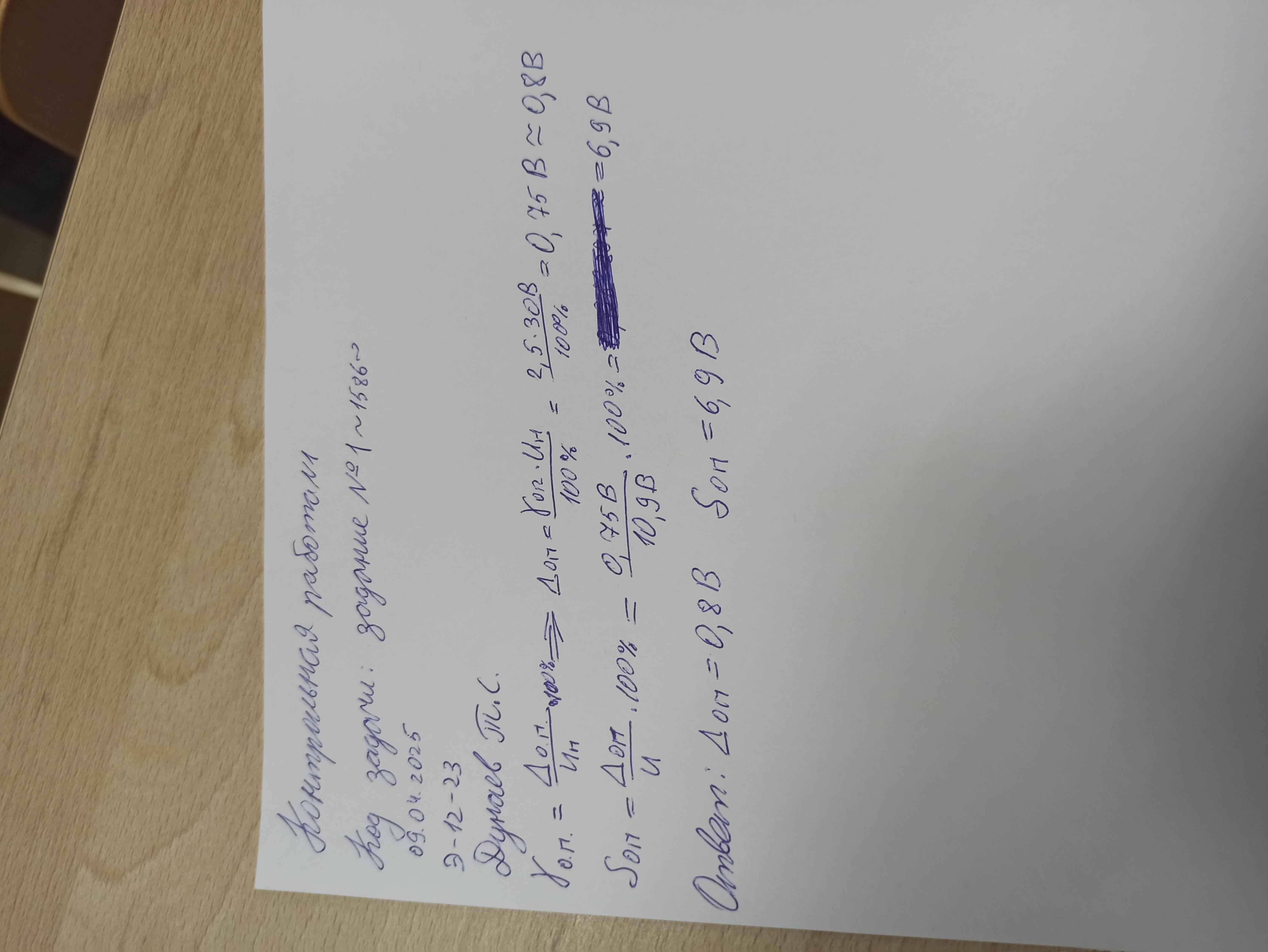 | Передача решения в систему. На нелинованном листе бумаги напишите текст решения, сфотографируйте работу согласно правилам выполнения работы. Cо своего почтового ящика ОСЭП отправьте письмо на адрес dit-mpei-09@exam-edu.ru с темой письма Re: Метрология, КР № 1 [задание № 1~1586~] и пустым текстом письма. К письму обязательно ПРИЛОЖИТЕ фото рукописи. Через 5..7 минут в Ваш почтовый ящик придет письмо с результатом распознавания текста рукописи. |