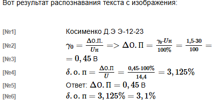 | Коррекция результата распознавания . Если необходима коррекция результата распознавания, подготовьте фото корректируемых строк согласно правилам выполнения работы и затем со своего почтового ящика ОСЭП отправьте письмо на адрес dit-mpei-04@exam-edu.ru с темой письма Re: Метрология, КР № 1 РАСПОЗНАВАНИЕ [задание № 1~1591~] и пустым текстом письма. К письму обязательно ПРИЛОЖИТЕ только фото корректируемых строк. Через 5..7 минут в Ваш почтовый ящик придет письмо с откорректированным результатом распознавания текста рукописи. |