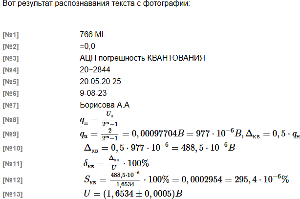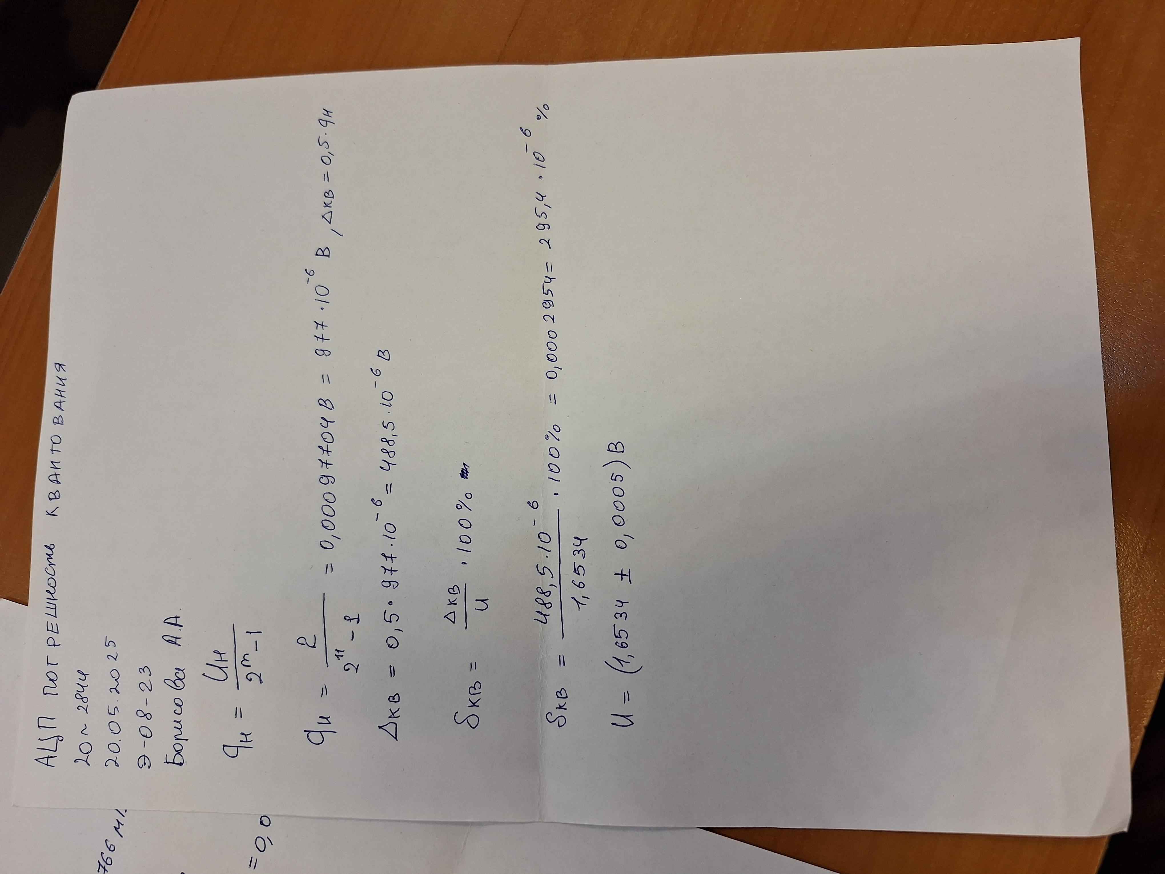 Метрология, КР № 18 [ АЦП, погрешность квантования ]На вход АЦП с разрядностью m= 11 и номинальным значением Uн = 2 В поступает напряжение U = 1.6534 В . Каково абсолютное Δкв и относительное δкв значения погрешности квантования при измерении этого напряжения? Записать результат измерения. В решении следует использовать следующие обозначения параметров: m - разрядность АЦП $q_н$ - номинальное значение кванта АЦП При решении задачи обязательно укажите исходные данные. |