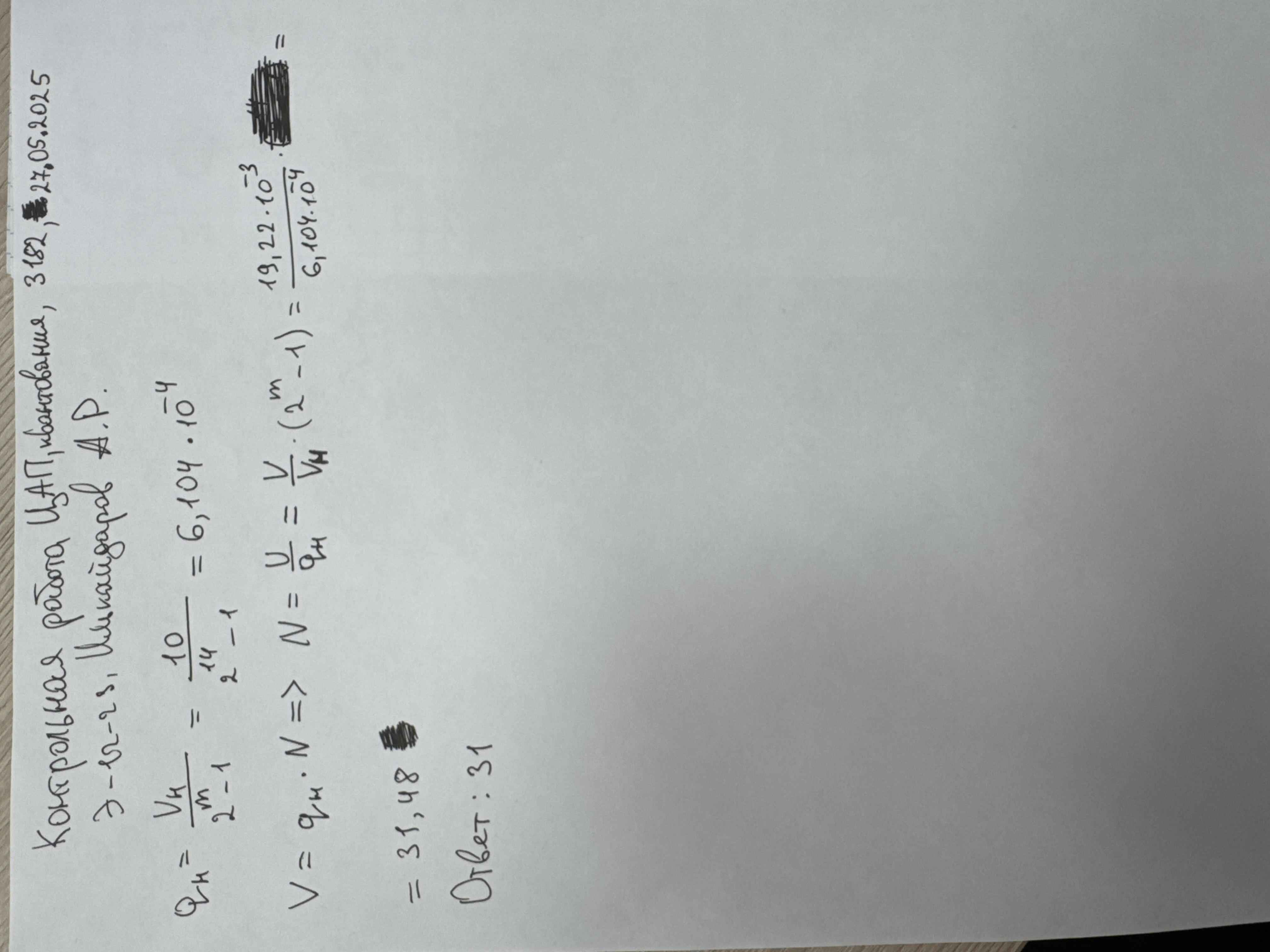 Имеется ЦАП разрядностью m = 14 с номинальным напряжением Uн = 10 В Какой двоичный код N2 надо подать на вход ЦАП, чтобы на выходе появилось напряжение U ≈ 19.22 мВ В решении следует использовать следующие обозначения параметров: m - разрядность АЦП qн - номинальное значение кванта ЦАП При решении задачи обязательно укажите исходные данные. При записи результатов промежуточных расчетов Целесообразно использовать не менее 5 значащих цифр. |